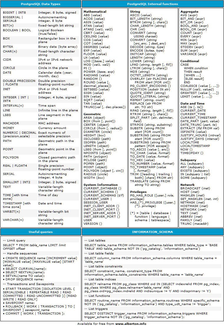 PostgreSQL Cheat Sheet
